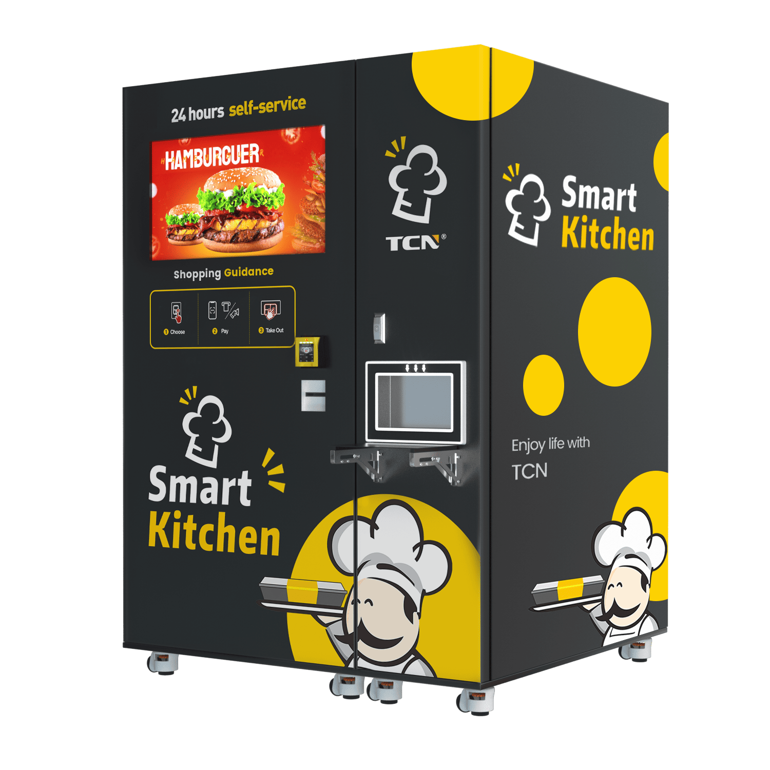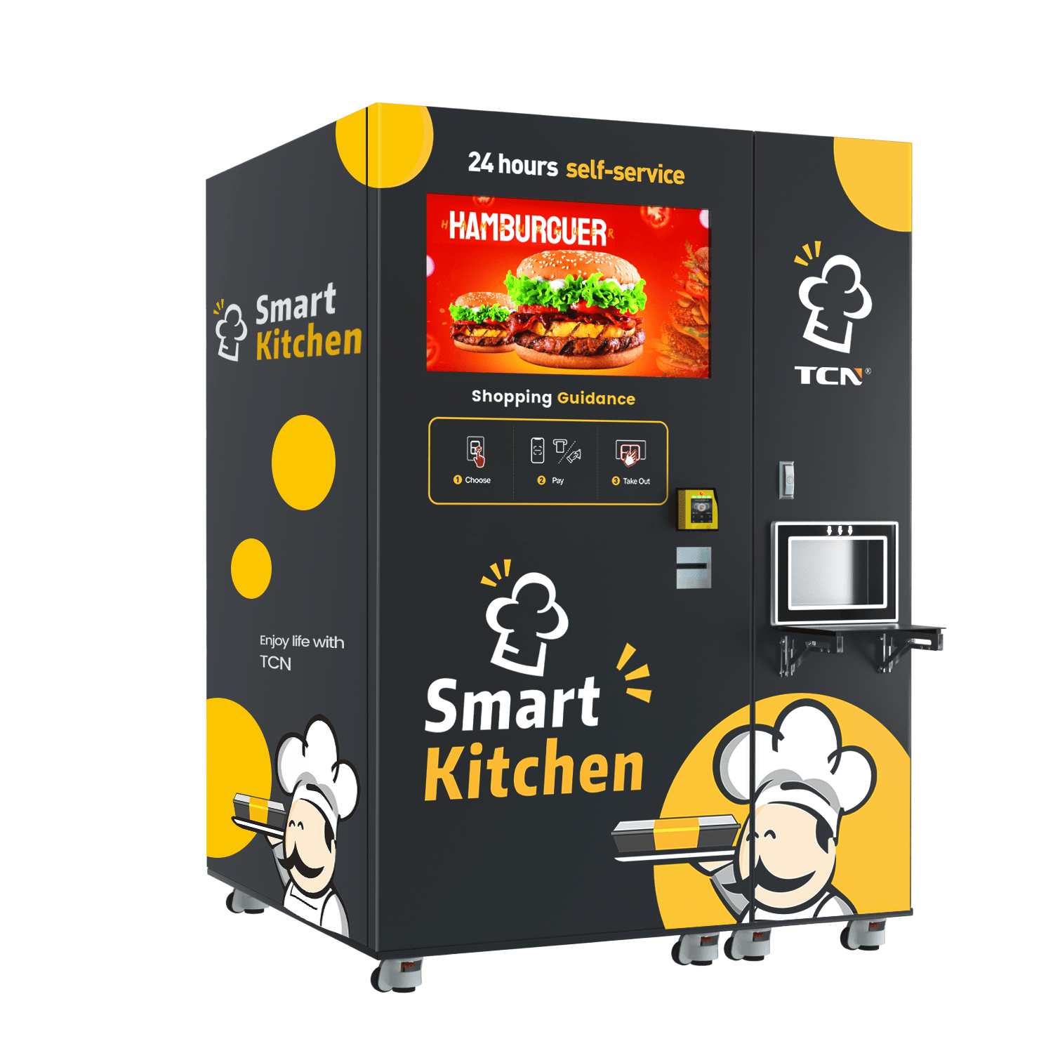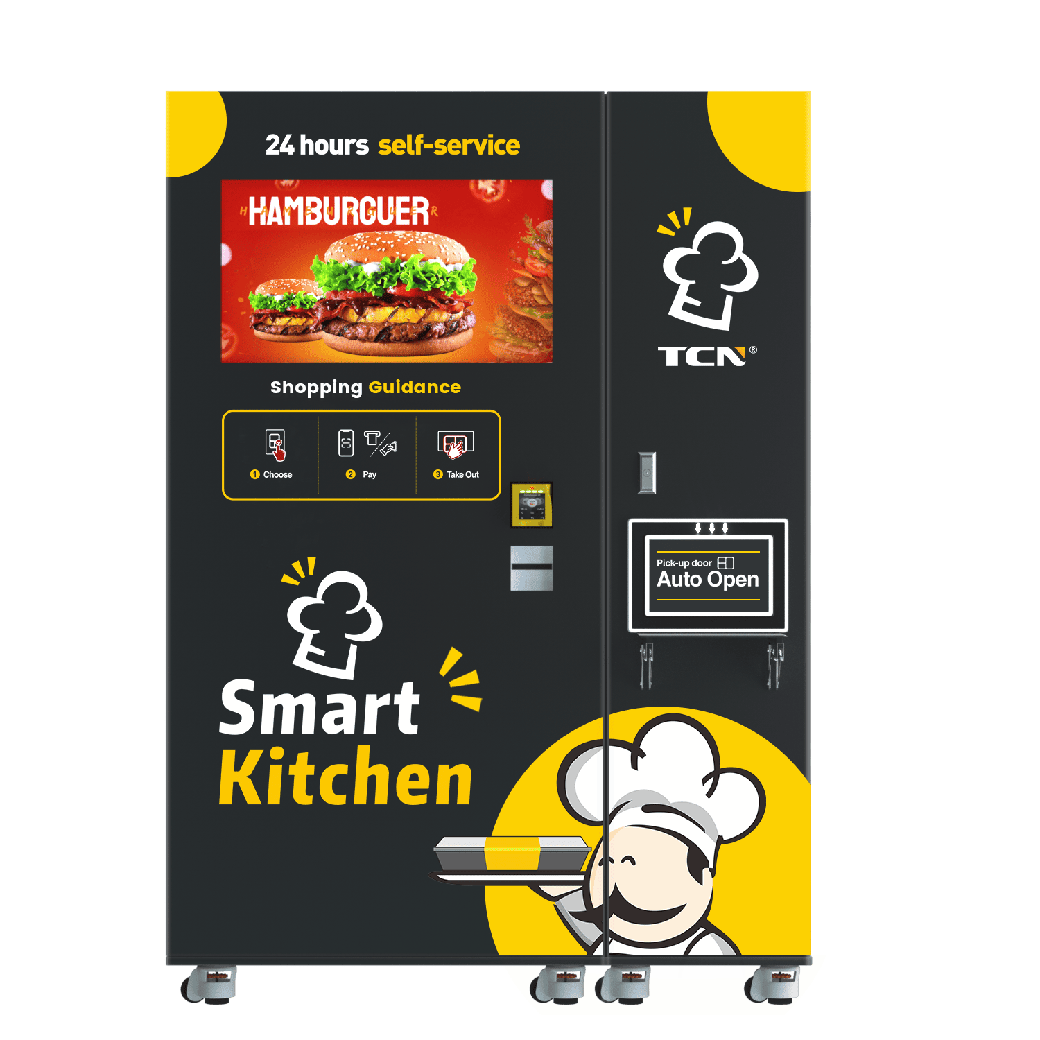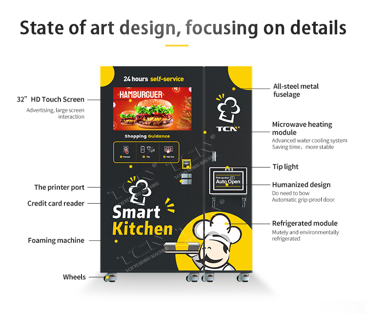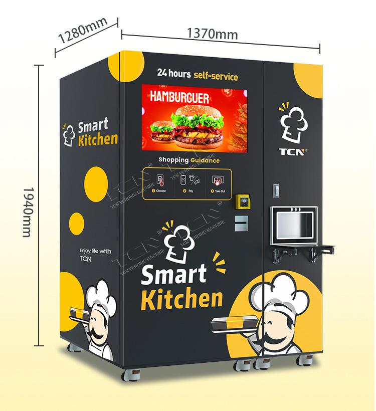 TCN Smart Burger Vending Machine: 60s 3800W microwave heating for fresh burgers/fries