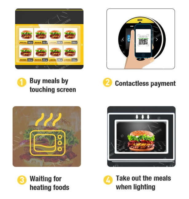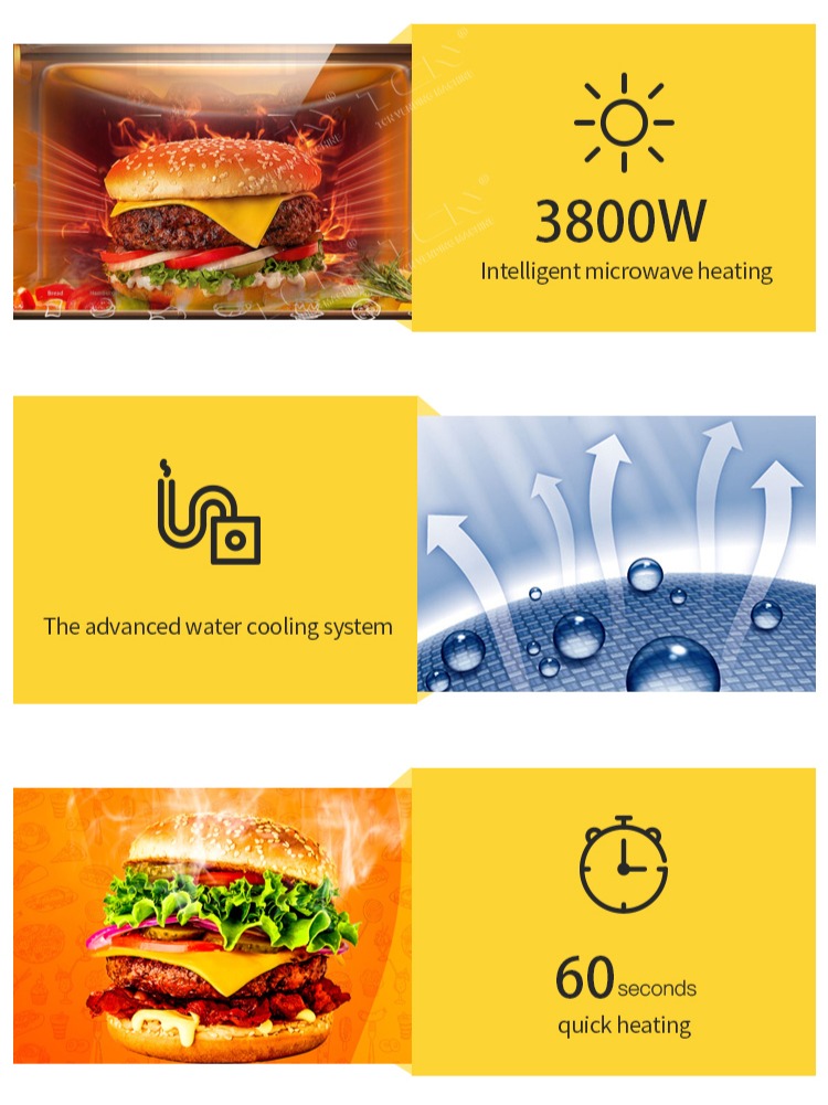 TCN hamburger vending machine featuring 3800W intelligent microwave heating , delivering restaurant-quality meals in just 60 SECONDS without compromising nutritional value, color, or flavor. The advanced water cooling system prevents overheating while the built-in sterilization module ensures food safety. This heating approach guarantees consistently perfect results for burgers, snacks, and complete meals.