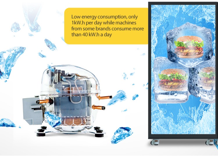 TCN hamburger vending machine equipped with commercial compressor to deliver both refrigerator and freezer-level performance while consuming just 1kWh PER DAY - up to 97% less energy than conventional machines (some brands use 40+kWh daily). This advanced cooling technology maintains perfect preservation conditions while dramatically reducing operational costs for 24/7 operations.